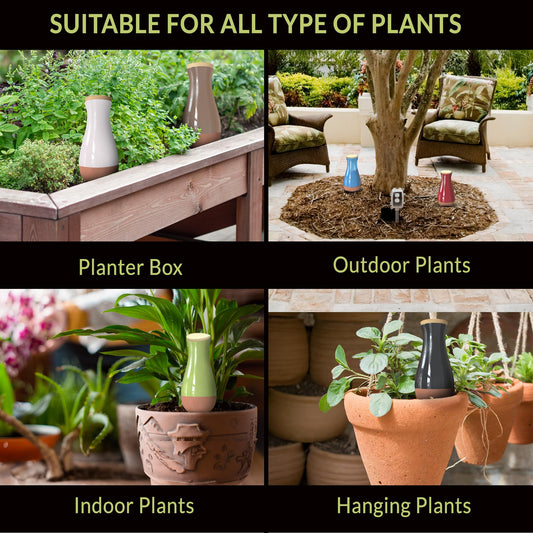 Overwatering and underwatering are common issues. Our self watering spikes and self watering globes release water when the soil is dry, preventing root rot and dehydration.